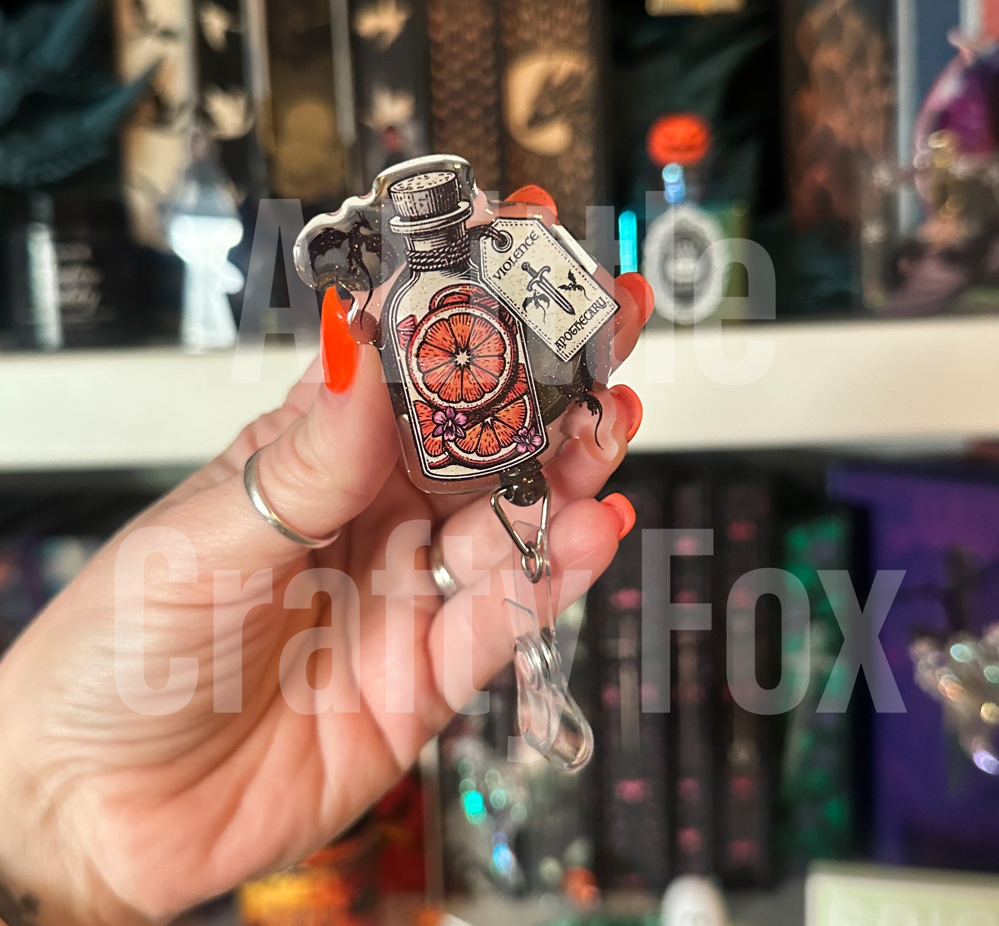 Violet’s Apothecary Fourth Wing Inspired Officially Licensed Glitter Acrylic Badge Reel